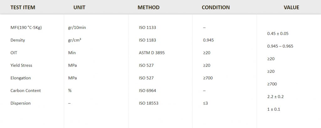 GM-IP80B-HD Is a black high density polyethylene, for the pipe extrusion process. Suitability for use in any application should be determined by appropriate performance testing